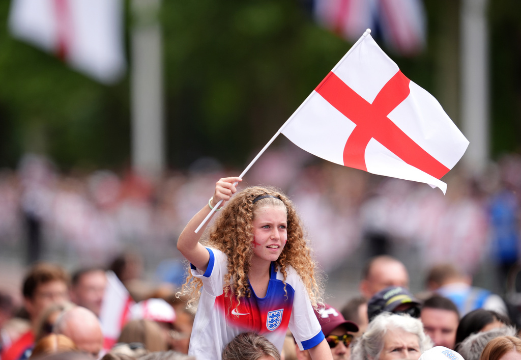 Led by a marching band along the iconic Mall and later serenaded on stage by music stars Burna Boy and Heather Small, England’s players and staff partied in front of Buckingham Palace.