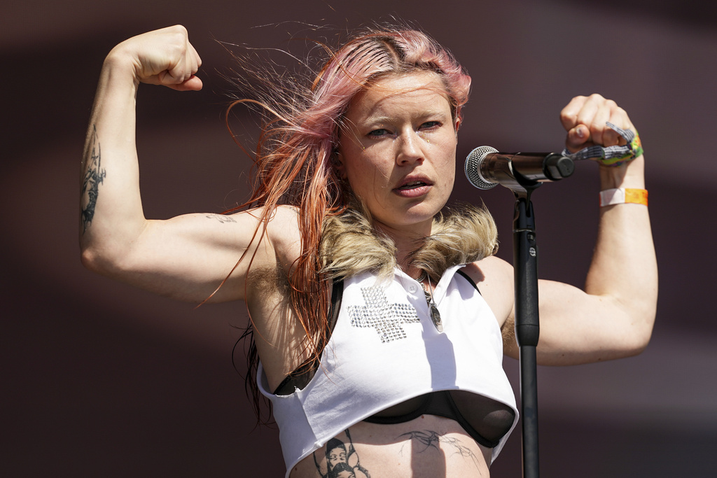 PinkPantheress performs during the Glastonbury Festival in Worthy Farm, Somerset, England, Friday, June 27, 2025. (Scott A Garfitt/Invision/AP)