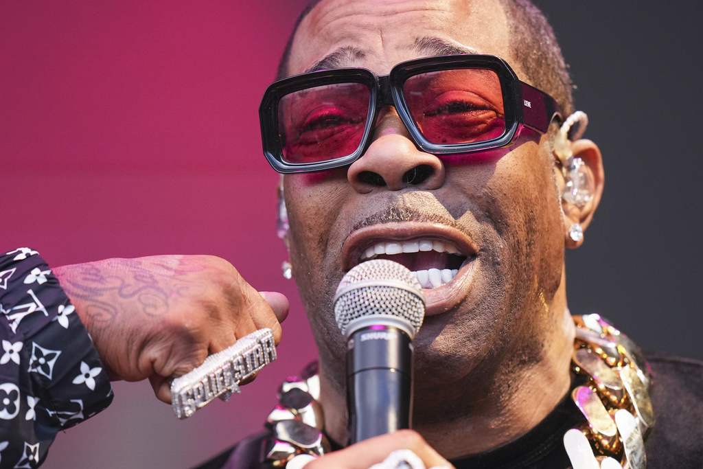 Busta Rhymes performs during the Glastonbury Festival in Worthy Farm, Somerset, England, Friday, June 27, 2025. (Scott A Garfitt/Invision/AP)