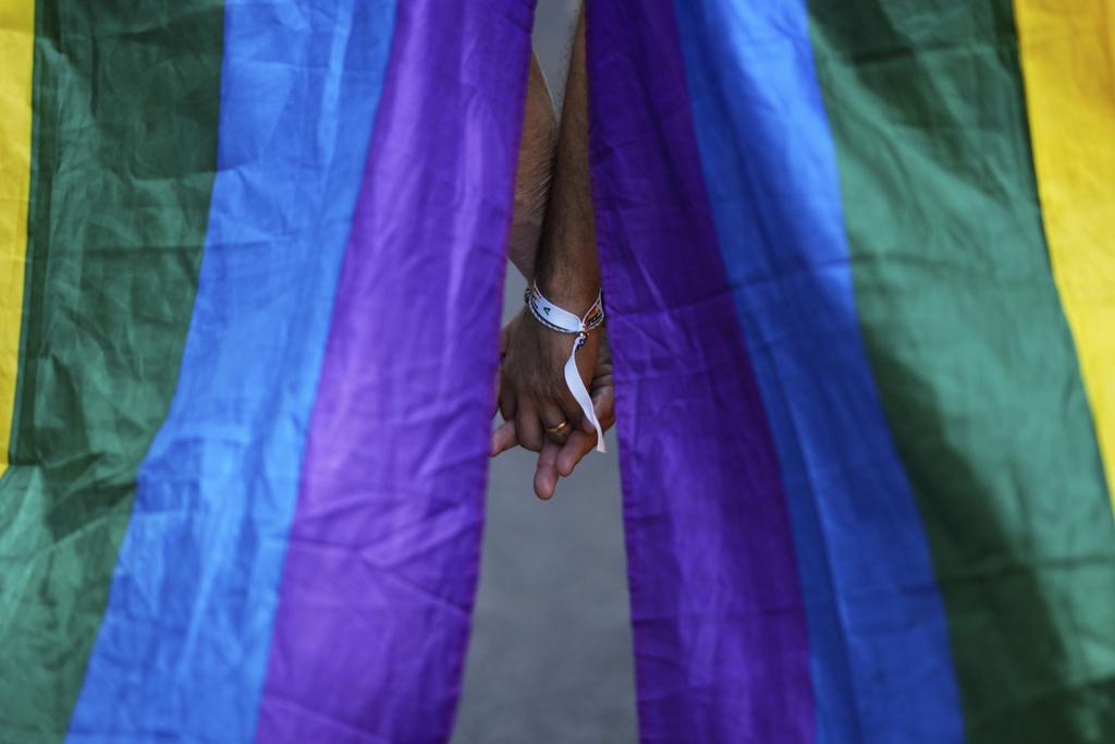 A reveler takes part in the annual Pride parade marking LGBTQ+ Pride Month, in Sao Paulo, Sunday, June 22, 2025. (AP Photo/Ettore Chiereguini)