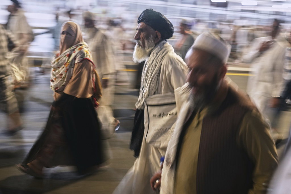 An Afghan Muslim pilgrim, looks on as he prepares to enter the Grand Mosque, during the annual Hajj pilgrimage in Mecca, Saudi Arabia, Monday, June 2, 2025. (AP Photo/Amr Nabi)