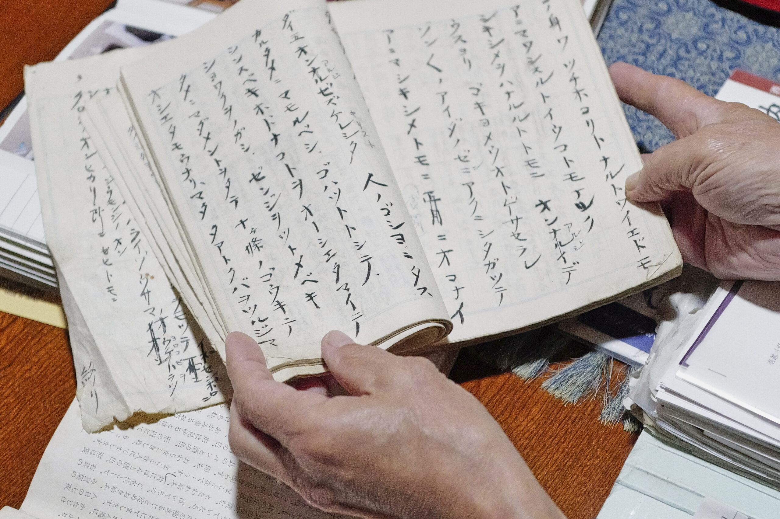 Just as his father did when memorizing the Orasho, Funabara has written down passages in notebooks; he hopes his son, who works for the local government, will one day agree to be his successor.