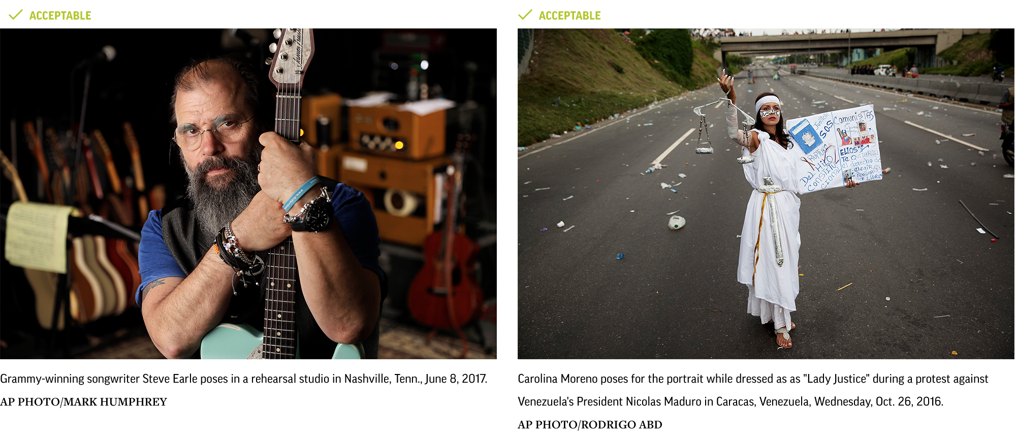 We do not ask people to pose for photos unless we are making a portrait and then we clearly state that in the caption. We explain in the caption the circumstances under which photographs are made. If someone is asked to pose for photographs by third parties and that is reflected in AP-produced images, we say so in the caption. Such wording would be: “XXX poses for photos.’’
