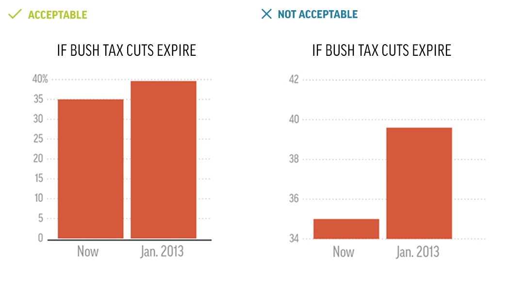 Since bar charts compare data points, the value axis must always start at zero. This safeguards bar charts from inaccurate conclusions and exaggerated data.