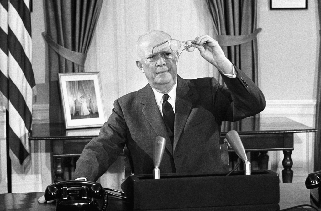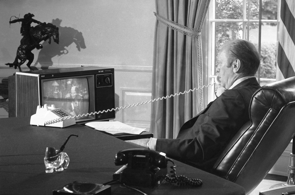 - President Richard Nixon saluting his staff after resigning amid the Watergate Scandal.