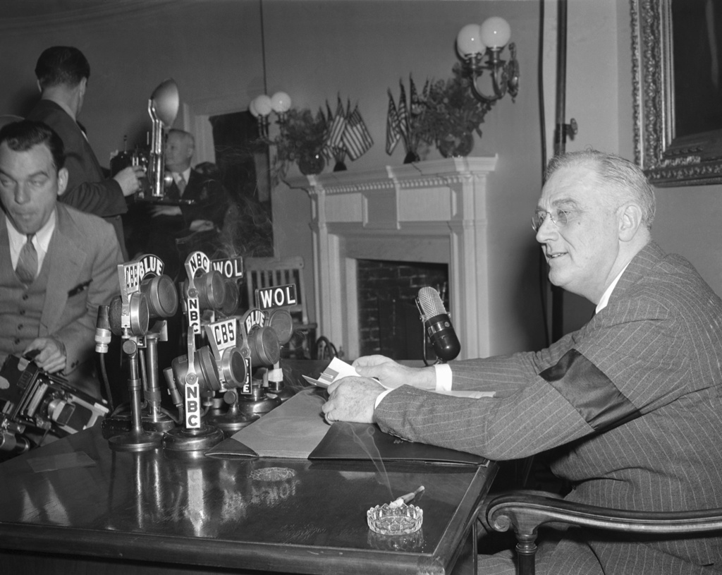 - President Harry Truman announcing the surrenders of Germany and Japan to end World War II.